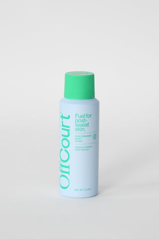 OffCourt is your one-stop shop for workout-friendly self-care and hygiene products designed to fit your lifestyle. We recommend packing our Performance Body Spray, an aluminum-free formula that squashes bad odors at its source, to freshen up while still allowing your body to sweat as intended.