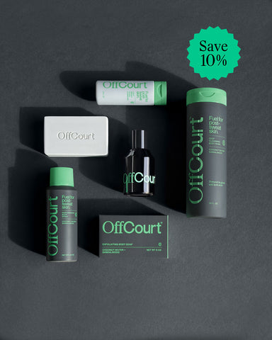 Sound like a lot? It doesn’t have to be. OffCourt makes it simple to stay on top of your hygiene with our All the Way Bundle, which features everything you need to stay fresh and clean. In it, you’ll find our Deep Cleansing Body Wash, Exfoliating Soap, Body Spray, and Fragrance in matching scents. As a bonus, we’ve also included our Lightweight Facial Hydrator, perfect for locking soothing moisture deep into your skin. We design skincare products for athletes that work so you don’t have to stress over keeping your skin happy.